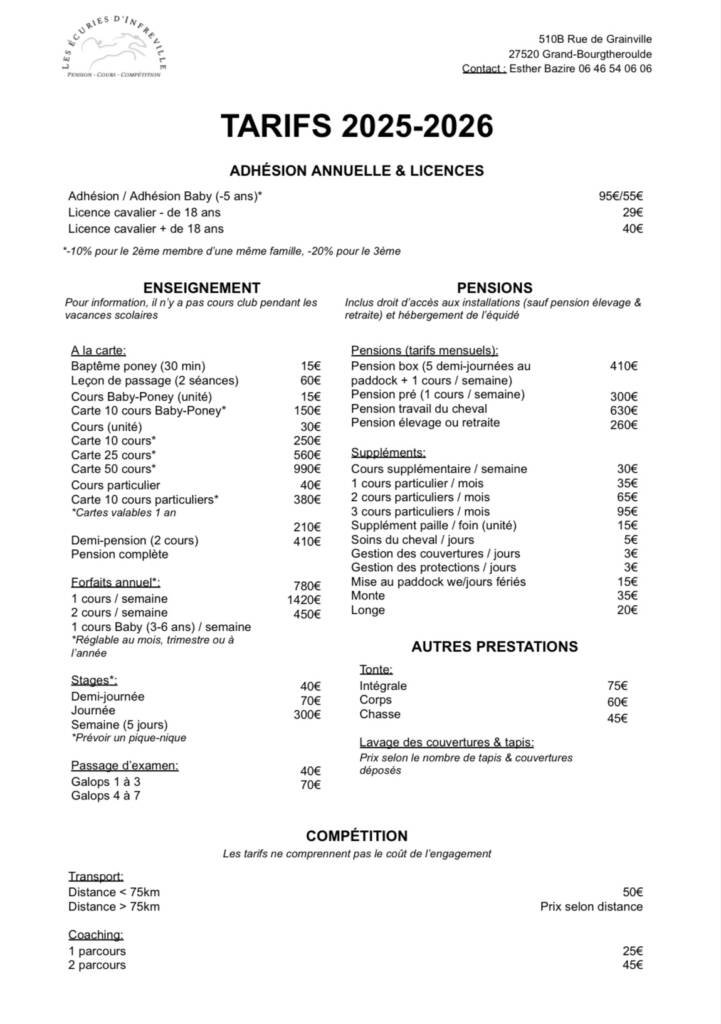Tarifs 25/26